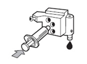 Посредством спринцовката от сервизния комплект промийте всички отвори на клапата.